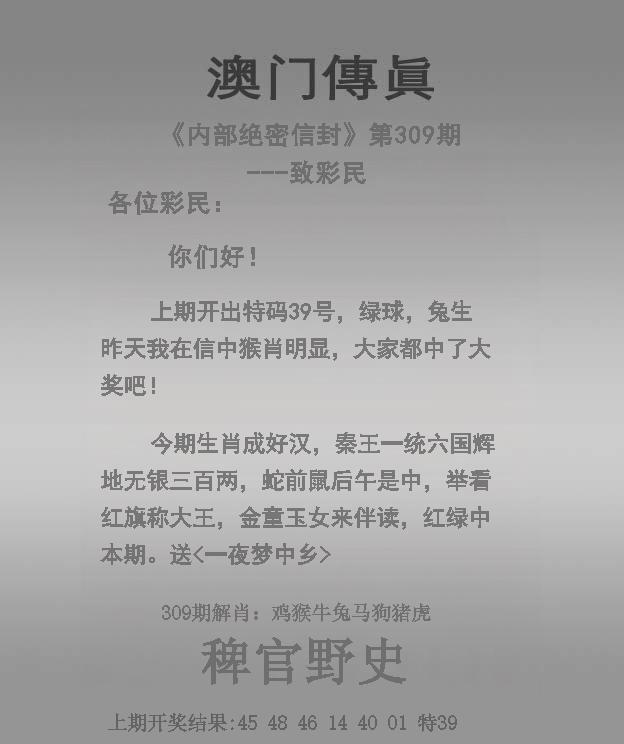 309期:【情真意切】⑦码中特 ✅ 完美中奖